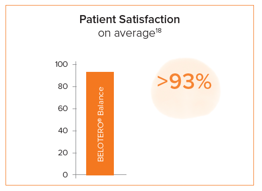 Over time, your skin begins to lose naturally occurring components such as collagen and elastin. This leaves it more prone to develop etched-in lines and wrinkles. As an HA filler, Belotero Balance (+), composed of hyaluronic acid, being a naturally occurring component of the skin, can be used to restore volume and smooth the lines and wrinkles that form with age. Compared with other HA fillers, Belotero Balance (+) is manufactured for greater cohesion and balanced viscosity and elasticity—properties that allow your provider to customize your treatment and achieve subtle, natural-looking results.