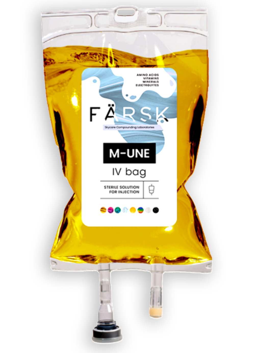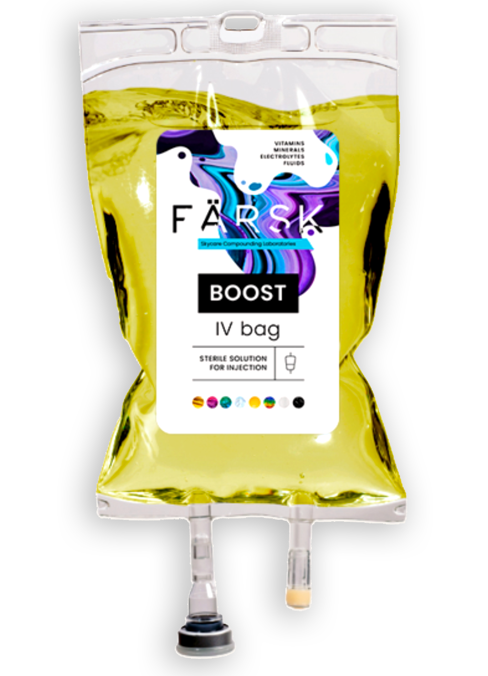 Färsk Health and Skycare Compounding Laboratories have collaborated to create an extensive range of IV Drip treatments. The goal is to provide convenient, and premium quality product with a pre-compounded, ready-to-use product that eliminates the need for a mixing hood. The bags are filled with high-quality active ingredients, minerals, and electrolytes. The solution is isotonic to blood, ensuring compatibility, and remains sterile and stable for up to 90 days when stored at the correct temperature.
