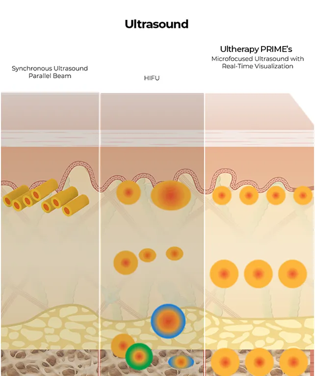 In line with Ultherapy, the unique Ultherapy PRIME® experience also offers the advanced technology that treats deeper than any other FDA-cleared non-invasive lifting treatment with real-time visualization at the optimal depths, enabling a truly personalized, effective long-term lift that can last up to a year or more after just one session with no downtime, for all skin types.